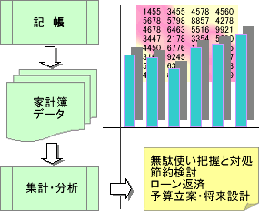 分析によって、無駄使いや節約の状況、そして、全体の収支状況が分かってきます。